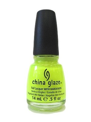 Sheer, bright neon highlighter yellow creme nail color with green undertones.