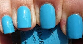 Bright aqua blue creme nail color.